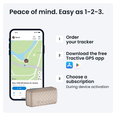 Tractive-sporeren tilbyr månedlige, årlige eller 2- eller 5-årige abonnementer og leveres med et innebygd SIM-kort som gir dekning i hele Europa og resten av verden.