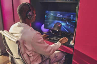 Takket være 40 mm drivere og JBL QuantumSOUND Signature-teknologi vil ingen tone eller viktig lyd gå ubemerket hen. Med Windows Sonic spatial lydstøtte kan du dessuten fly gjennom slagmarken og få en klar oversikt over hvor fiendene dine befinner seg.