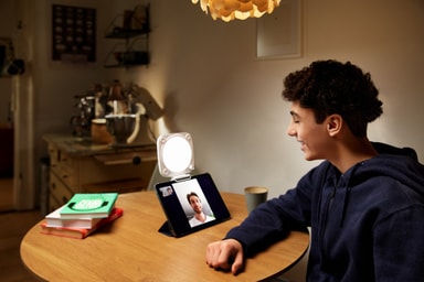 Du kan enkelt endre lysets posisjon slik at det ikke lenger lyser opp ansiktet ditt, men i stedet fungerer som en skrivebordslampe.
