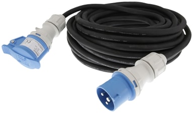 Deltaco skjøteledning GT-983 med 1 stk. CEE 16A hann- til 1 stk. CEE 16A hunn-tilkobling har en 20 m lang sort kabel og IP44-beskyttelse, slik at den trygt kan brukes utendørs.