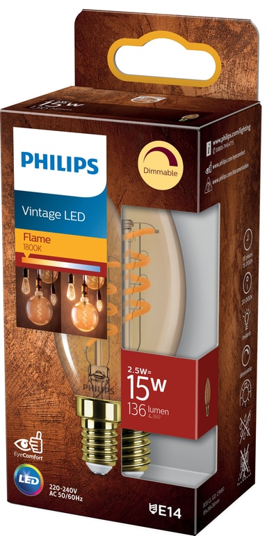 Gjør interiøret ditt koseligere ved hjelp av Philips Giant LED-pære 3W E14. Den energieffektive LED-pæren med synlig glødetråd gir et atmosfærisk ekstra varmt lys.Les mer om produktet