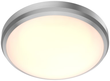 Philips Doris er en serie taklamper designet spesielt for det fuktige miljøet i badet. IP44-klassifiseringen betyr at de er motstandsdyktige mot sprut av vann. Denne Doris-lampen har en rund design i børstet metallfinish og er 22 cm i diameter. Den integrerte LED-en gir et varmhvitt lys.