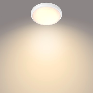 Philips Doris er en serie taklamper designet spesielt for det fuktige miljøet i badet. IP44-klassifiseringen betyr at de er motstandsdyktige mot sprut av vann. Denne Doris-lampen har et rundt design i hvitt og er 22 cm i diameter. Den integrerte LED-en gir et varmhvitt lys.