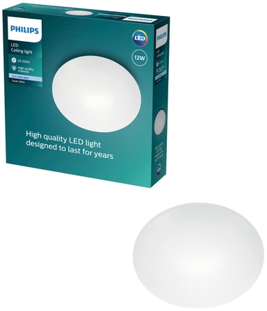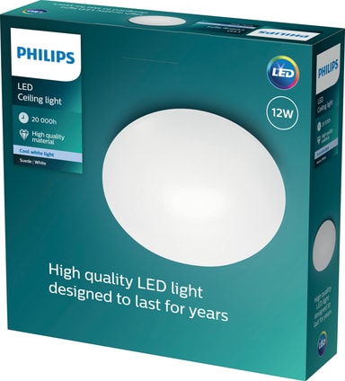 Med Philips Suede taklampe 12W kan du si farvel til svak belysning og i stedet ønske velkommen til sterkt opplyste rom. Denne stilige taklampen sprer et jevnt, kjølig hvitt lys, noe som gjør den til et perfekt tilskudd til stuen, kjøkkenet, eller gangen.
