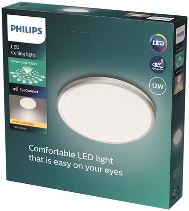 Philips Twirly taklampen fyller rommet ditt med varm hvit belysning. Det integrerte LED-panelet sikrer jevn lysfordeling, og den stilrene, minimalistiske designen gjør at denne lampen passer enkelt inn i alle rom i hjemmet ditt. Denne Twirly-lampen er rund med grå finish, og den måler 28,7 cm i diameter.