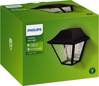 Philips Alpenglow vegglampe 42 W E27 fremhever inngangspartiet, hagen eller uteplassen og skaper en hyggelig atmosfære. Denne lykten av høy kvalitet med IP44-sertifisering er værbestandig og vil tjene deg i mange år fremover.Les mer om produktet