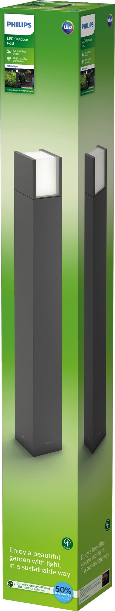 Lys opp oppkjørselen, hagen og stiene på eiendommen din med letthet takket være elegante Philips Arbor utendørs stolpelampe 3,8W. Denne ultraeffektive utelampen gir deg en langvarig belysningsløsning samtidig som den reduserer energikostnadene. Lyset produserer varmt fargetemperaturlys på 3000k og tilbyr enkel installasjon. I tillegg kommer lyset med IP44-værbestandig design.