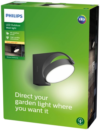 Takket være Philips Mimosa utendørs vegglampe 7W kan du enkelt lyse opp uteområdet, terrassen eller hagen ved hjelp av det justerbare hodet. Lampen har IP44-værbestandig design, varm fargetemperatur på 2700K og bred lysdekning.Les mer om produktet