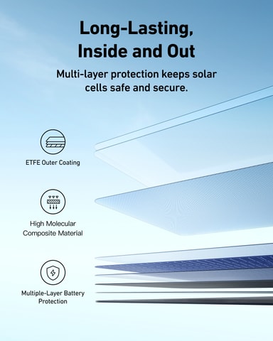 Dette solcellepanelet lader 1,5 ganger raskere ettersom det har monokrystallinske celler og en kraftig overflate som fanger opp sollyset. Konverteringseffektiviteten er på opptil 23 %.
