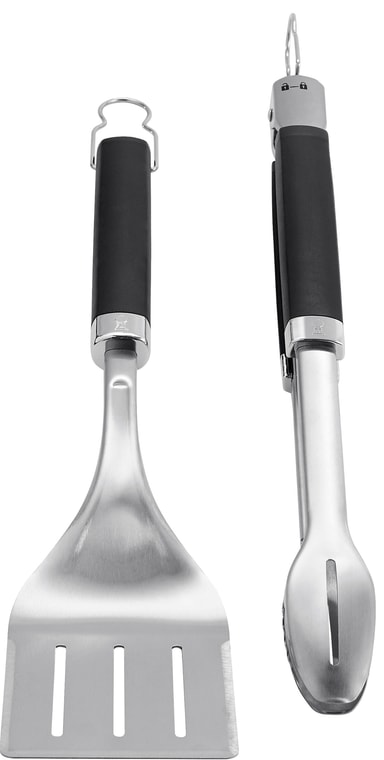 Med Weber Precision grillsett med grilltang og grillspade 6763 er du klar til å kaste deg over grillingen. Begge verktøyene er laget i rustfritt stål og har et soft-touch-håndtak for å gi deg et komfortabelt og sklisikkert grep. Tangen har et design med flat forkant, slik at du enkelt kan plukke opp maten, mens spaden med tresidet skråkant lar deg uanstrengt løfte og flytte maten på grillen. Settet kan vaskes i oppvaskmaskinen.