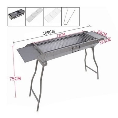 En grill som er enkel å lagre og flytte takket være det sammenleggbare designet. Når grillen brettes opp, oppstår et håndtak som gjør den mer praktisk å transportere. Grillflaten er stor nok til å romme mye av det som ønskes. Den har to sideplater hvor du kan plassere grilltilbehør og mat. Det er ventiler i hver ende av grillen for kontroll og temperaturjustering.