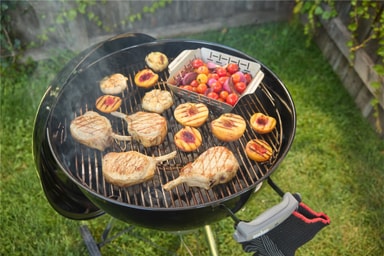 Designet for pålitelig varmefordeling støtter kjelen både direkte og indirekte grillmetoder, slik at du kan grille, steke eller ovnssteke. Justerbare spjeld på bolle og lokk gir presis kontroll over luftstrømmen, mens det innebygde lokketermometeret hjelper deg med å overvåke temperaturen for perfekte resultater. Kompatibel med sirkulært GBS-tilbehør, som utvider mulighetene dine med tilbehør som pizzastein eller gryter.
