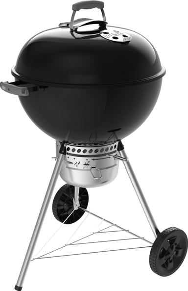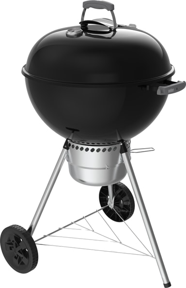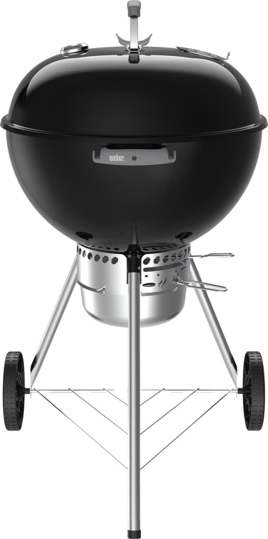 Med den ikoniske Weber-kjeleformen har denne modellen en porselenslakkert bolle og lokk som holder på varmen samtidig som de motstår rust, flassing og riper. Den hengslede stålbelagte grillristen gjør det enkelt å legge til kull underveis, og den innebygde lokkhaken lar deg hvile lokket på siden i stedet for å plassere det på bakken. Høyere ben og slitesterke hjul for all slags vær gir behagelig grillhøyde og enkel mobilitet.
