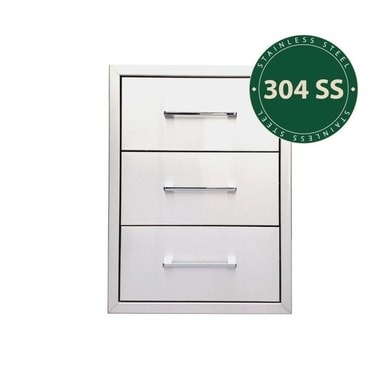 Få oppbevaringsplass ved siden av grillen! Skuffemodul med tre skuffer for innbygging. Praktisk og stilren skuff i rustfri utførelse og med en flott ramme - for et utekjøkken der hver detalj får stå i sentrum. Perfekt for deg som ønsker stor oppbevaringsplass på en samlet flate. Størrelsen og dybden på 46 cm gjør skuffen ypperlig egnet som oppbevaringsskuff til for eksempel grillredskaper, skjærebrett, håndklær, krydder og alt annet du ønsker å ha på utekjøkkenet.
