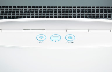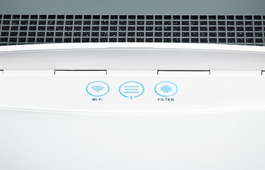 LED-ikoner: Smarte og intuitive LED-symboler viser deg tilkoblingsstatus til WiFi, viftehastighet og minner deg på når du må bytte filter.
