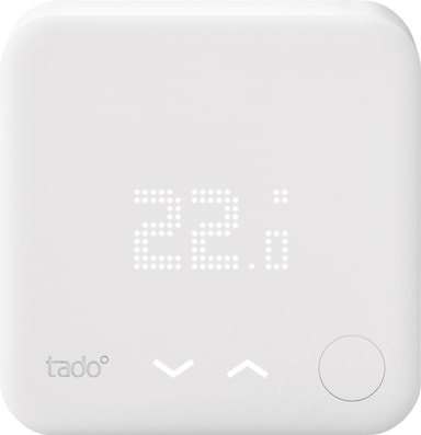 Smart Thermostat er kompatibel med 95% av alle sentralvarmesystemer med vann og gass, samt gulvvarmesystemer. Den er lett å installere med en intuitiv steg-for-steg online installasjonsguide. Den har et stilig design med en LED-matriseskjerm som tydelig viser temperatur og innstillinger, og den kan også styres ved hjelp av de berøringsbetjente pilene eller fjernstyres via Tado-appen. Tado reduserer energiforbruket ditt knyttet til oppvarming med opptil 31% (basert på en simulert studie), så her kan du spare mye på strømregningen.