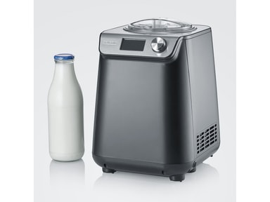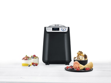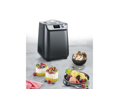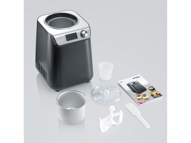 Severin EZ 7407 er en kompakt iskremmaskin med kompressor, som lager perfekt is til hele familien på bare 30 minutter. Iskremmaskinen kan tas i bruk umiddelbart, ettersom kompressoren sikrer rask nedkjøling. Kapasitet 1,2 liter. 135 W. EZ 7407 Iskremmaskinen har en praktisk åpning i lokket som gjør det enkelt å tilsette sjokoladebiter eller andre ting i iskremen. Når iskremen er ferdig, kan du aktivere en kjølefunksjon som holder iskremen kald i opptil 60 minutter. Iskremmaskinen har et brukervennlig display med temperaturvisning og digital timer som kan stilles inn med intervaller på 1 minutt. Det er ikke bare hjemmelaget iskrem du kan trylle frem i iskremmaskinen. Maskinen har en nyskapende varm- og kaldfunksjon, slik at du kan lage is og yoghurt. Når yoghurten er ferdig, blir den automatisk nedkjølt i maskinen. Iskremmaskinen er matt svart og har en enkel og kompakt design. Det følger dessuten med et målebeger og en spatel. Gled deg til å lage de nydeligste varianter av hjemmelaget is. Mulighetene er ubegrenset når det gjelder å kombinere favorittsmakene dine til både fløteis, sorbet, vegansk is og yoghurtis.
