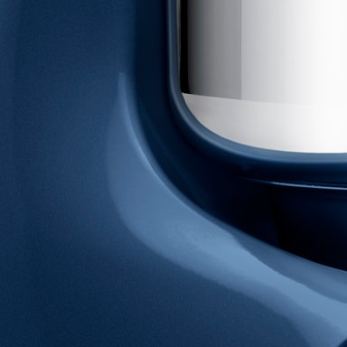 Kombinasjonen av en bolle i rustfritt stål, to stilfulle knapper og et design som går i blått og sølv skaper et lekkert uttrykk som passer alle kjøkkenbenker.