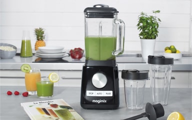 Spar tid og oppvask og blend direkte i to-go-begeret og ta det med deg når du er på farten. Alt du behøver å gjøre, er å fylle begeret med dine valgte ingredienser, feste basen og blende på Magimix power blenderLes mer om produktet