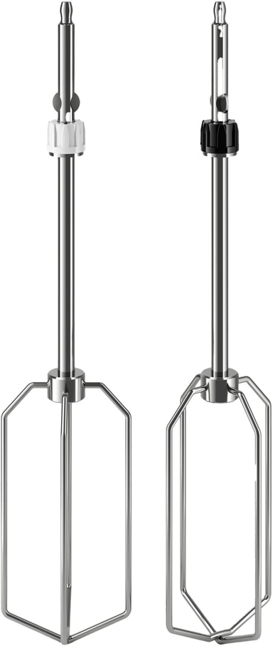 2-i-1-designet til håndmikseren lar deg kverne, mikse, og kna ingredienser. Lengden gjør det mulig å nå inn i hjørnet på miksebollene. Det ergonomiske håndtaket gir deg et sikkert grep uten å treffe kantene til bollen, selv når du knar gjenstridige deiger.