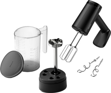 Håndmikseren har en rekke medfølgende tilbehør som gjør kjøkkenlivet enklere. Blendertilbehøret lar deg finhakke ingredienser til de er glatte pureer. Du får også et oppbevaringsbeger som kan holde alt av tilbehør og holder kjøkkenet ditt fritt for kaos. Alt av miksertilbehør kan maskinvaskes og er lett å rengjøre.