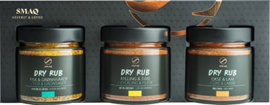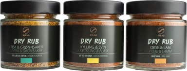 SMAQ dry rub gaveeske 8009 inneholder tre krydderblandinger til kylling og svinekjøtt, fisk og grønnsaker, samt oksekjøtt og lam. Bare gni inn i maten før du griller, steker eller røyker for å gi den en kraftig smak og en sprø overflate.Les mer om produktet