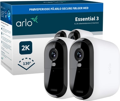 Arlo Essential XL 2K sikkerhetskamera leverer krystallklar 2K-video med fargenattsyn, innebygd spotlys og sirene. Det langvarige batteriet batteriet forbedrer ytelsen, mens Arlo Secure (selges separat) gir smarte varsler og skylagring.Les mer om produktet