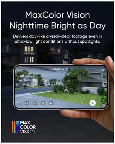 Enestående opptakskvalitet 4K UHD-videoopptakskvaliteten forbedret av MaxColor Vision sikrer skarpe og svært detaljerte opptak om dagen eller natten. Det KI-drevne nattsynet er i stand til å fange opptak med ultralavt lys som er nesten like tydelig som om det ble tatt opp på dagtid.
