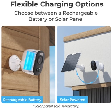 Overvåk omgivelsene dine uten behov for kabler, da dette kameraet drives av et oppladbart batteri med opptil 4 måneders batterilevetid.