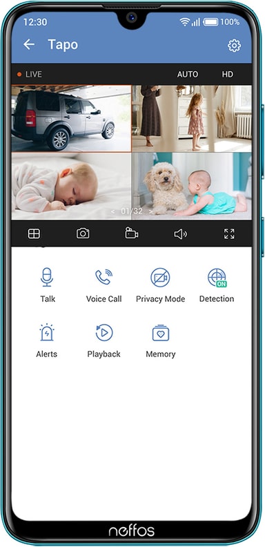 Last ned Tapo appen helt gratis for begge iOS og android og ta kontroll over kameraet. Praktiske funksjoner inkluderer gjennomgang av fangede opptak, kommunikasjon via 2-veis mikrofon og personvern modus for å slå av overvåking når du vil. Talekontroll er også tilgjengelig med Google Assistant og Amazon Alexa-støtte.