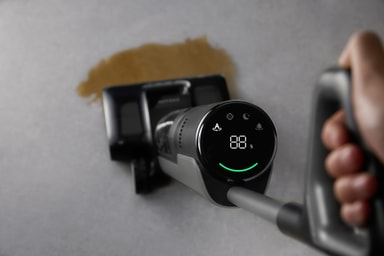 LED-display, stemmeveiledning og smussdetektor gjør det enkelt å overvåke ytelsen og bytte modus mens du rengjør.