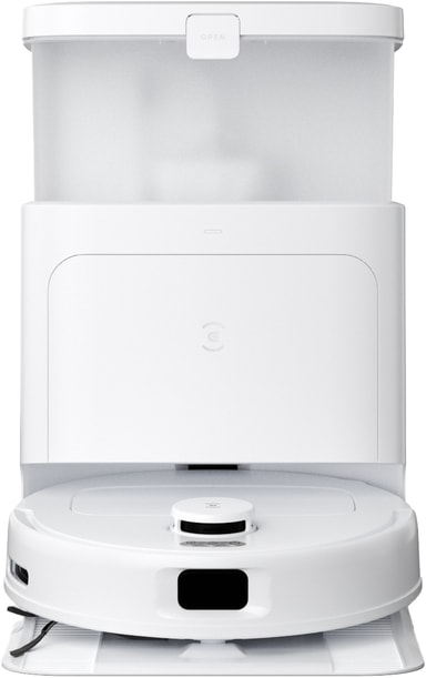 Omni-dokkingstasjonen automatiserer tømming av støvbeholderen, påfylling av vanntanken og selvrensing med roterende skrapere og varmt vann, noe som minimerer manuelt vedlikehold.
