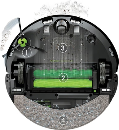 iRobot Roomba Combo 10 Max robotstøvsuger X085840 mopper og støvsuger sammen, og bruker et 4-trinns rengjøringssystem for å takle smuss på alle overflater. Koble den til iRobot Home-appen eller synkroniser med Google Home for kontroll, og nyt opptil 120 minutters uavbrutt rengjøring på en full lading.