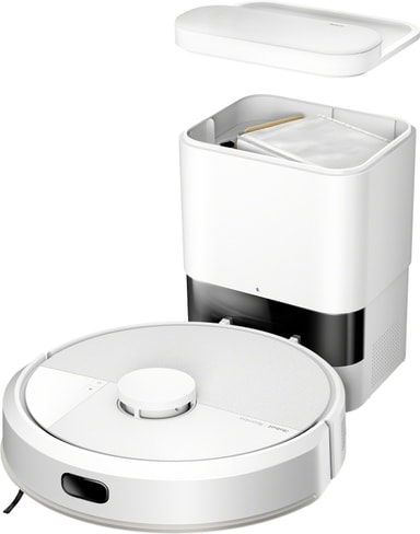 Denne roboten kommer med en automatisk tømmedokk som automatisk tømmer robotens støvbeholder i en forseglet pose. Bare bytt posen hver tredje uke for opptil 75 dager med håndfri rengjøring.