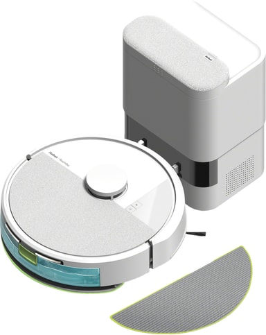 Robotstøvsugeren har en 240 ml støvbeholder og en 200 ml vanntank, som gjør at den kan støvsuge og moppe gulv samtidig for uavbrutt rengjøring.
