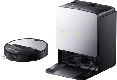 Multifunctional Dock 4.0 lader ikke bare enheten, men håndterer også støvoppsamling, moppevasking og tørking, noe som reduserer manuelt vedlikehold og holder roboten klar for neste rengjøringsøkt.