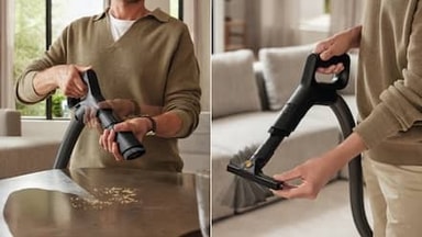 Miele Guard L1 er utstyrt med et innovativt 2-i-1-munnstykke – slik at du raskt og enkelt kan veksle mellom ulike rengjøringsoppgaver. Det kombinerer et ekstra bredt møbelmunnstykke og et fugemunnstykke i en plassbesparende design - for enkel rengjøring av møbeltrekk og vanskelig tilgjengelige områder. Takket være den praktiske oppbevaringsplassen i den bakre delen av støvsugeren, er den klar for bruk når som helst.