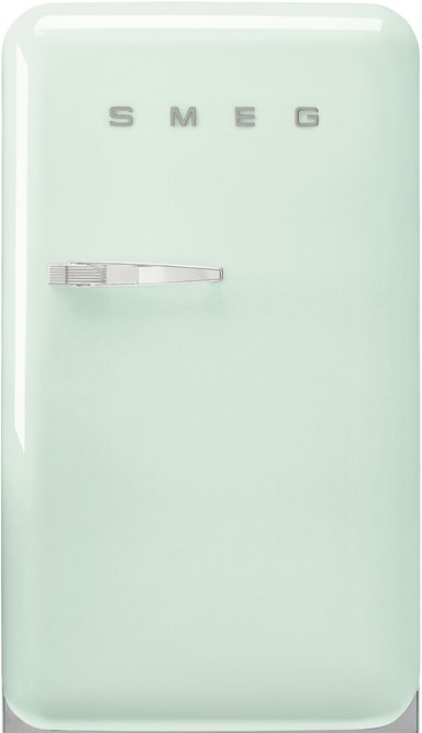 Smeg kjøleskap FAB10HRPG6 i pastellgrønn, med en kapasitet på 135 liter, har en retro 1950-talls design, stillegående drift på 35 dB, to justerbare hyller, LED-belysning og høyrehengslet dør. Perfekt for kompakte rom.Les mer om produktet