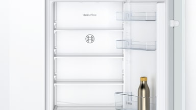 Bosch KIN86NSE0 Kjøleskap/fryser: elegant innebygd design med NoFrost-teknologi, LED-belysning og stillegående 35dB drift for et moderne kjøkken.Les mer om produktet
