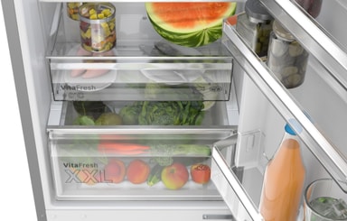 Det romslige VitaFresh XXL <0°C> systemet gir deg ideell oppbevaring av ferskmaten din. Det holder temperaturen lavere for kjøtt og fisk, og det er en egen, klimakontrollert skuff for å holde frukten og grønnsakene dine virkelig ferske.