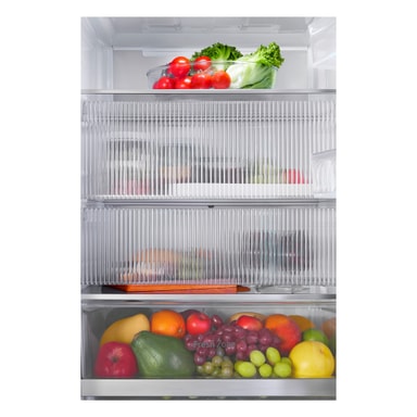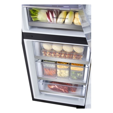I kjøleskapsdelen er det to smarte skuffer, FRESH-sonen der du kan oppbevare frukt eller grønnsaker, og FRESH Converter-skuffen der du kan stille inn temperaturen på tre forskjellige måter, perfekt for oppbevaring av kjøtt (-2°), fisk (-0°) eller grønnsaker (+3°).