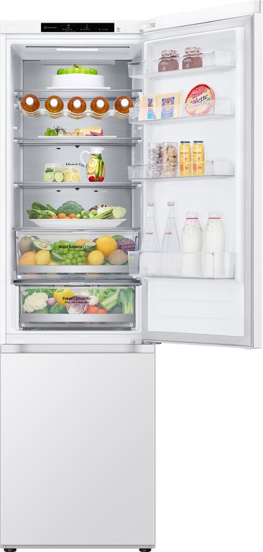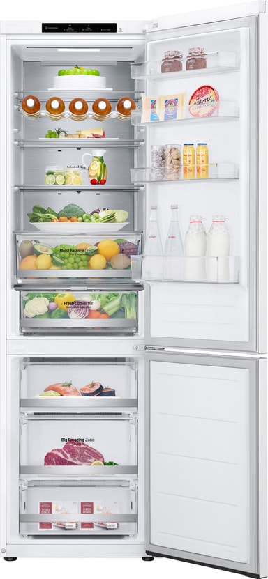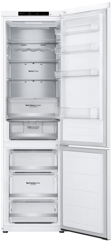 Med en romslig innvendig plass tilbyr LG kjøleskap/fryser GBV5240DSW praktisk og sikker matoppbevaring. Fresh Converter forlenger holdbarheten på lett bedervelige matvarer, mens NoFrost-teknologien sørger for vedlikeholdsfri drift. Takket være Linear Inverter Compressor kan du nyte stille og effektiv drift.