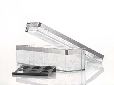 Mieles ComfortClean-dørhyller er laget av kunststoff av høy kvalitet og er ekstra ripefaste, kjemikalieresistente, temperaturbestandige og høytransparente. ComfortClean-dørhylle kan enkelt rengjøres hygienisk i oppvaskmaskin (opptil 55 °C) etter at pyntelistene er tatt av. Dermed trenger du ikke lenger vaske hyllene for hånd.