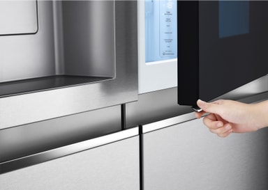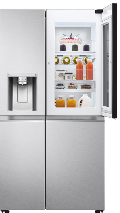 Bank to ganger og se 23 % mer av hva som finnes i kjøleskapet med den seneste generasjonen InstaView Door-in-Door™*. *Sammenliknet med LG konvensjonelle Side-by-Side InstaViewThinQ ™ (GSX971NEAE).