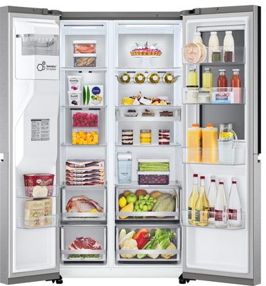 Få mer plass til mat med LG side-ved-side kombiskapGSXV91MBAF som med sin kapasitet vil passe til hvilken som helst husholdning. Takket være smarte funksjoner som NoFrost, MultiFlow, DoorCooling, vann- og isbitdispenser, samt InstaView dør-i-dør-design, vil maten din alltid holde seg i riktig temperatur og dermed bevare sin smak og ferskhet.