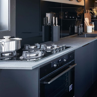 Chef er en lekker nedfellbar koketopp for gass i sort glass.