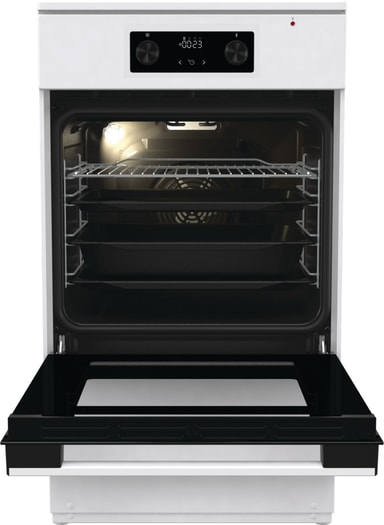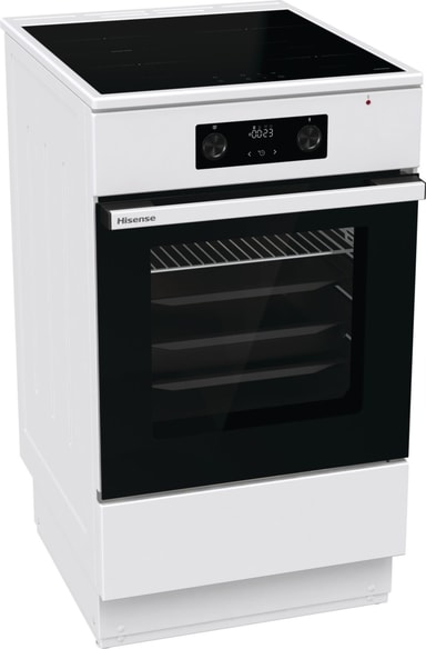 Denne 50 cm brede Hisense-komfyren er kompakt i størrelse, men full av funksjoner og perfekt for mindre kjøkken, uten å gå på kompromiss med høy ytelse. Den hvite finishen gir et rent, moderne preg, og til tross for den kompakte størrelsen har den alle funksjonene du trenger for å utfolde deg på kjøkkenet.