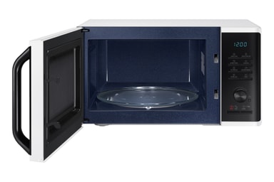Samsung mikrobølgeovn MS23K3515AW varmer opp og tiner maten din uten problemer. Den kommer i et elegant design med en stor roterende plate, rask opptiningsfunksjon og et keramisk emaljert interiør.Les mer om produktet