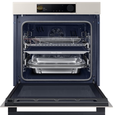 Tilgjengelig for Android- og iOS-enheter med WiFi-tilkobling og Samsung-konto. ** Et fat bør plasseres midt i stekeovnen for best mulig gjenkjenning. Deteksjonsnøyaktigheten kan variere avhengig av bruksforholdene. Les mer i brukerveiledningen. *** Kameraet fungerer bare når lampen er tent. **** Opprettet ved hjelp av videoopptak når døren er lukket. Når tilberedningen er ferdig, tar det ca. 20 sekunder å kode videoen i MPEG-filformat. Scenen er arrangert og kun ment for illustrasjonsformål.