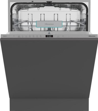 Gjør kjøkkenet ditt mer effektivt med denne helintegrerte oppvaskmaskinen fra Hisense. Med plass til 14 kuvert og et forbruk på så lite som 9,7 l vann per syklus.